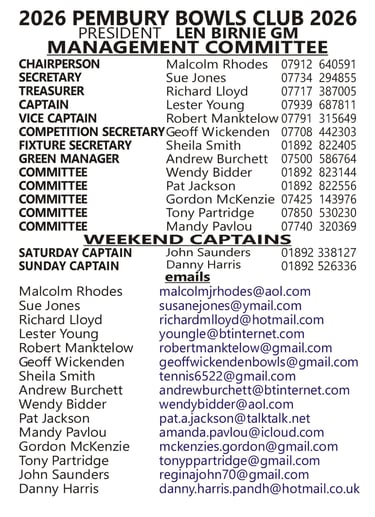 For more information, please email pemburybowlsclub@gmail.com, or come along to the green any Wednesday at 6pm or Friday at 2pm between 16 April and 19 September 2025.
